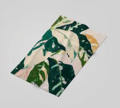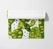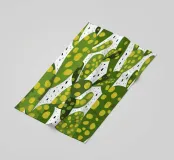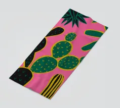 A close up, stylized pattern of a prickly pear cactus shows its green pads and yellow spots in a vibrant and graphic design, capturing the unique texture of the desert plant.