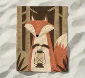 Una volpe con gli occhi chiusi, che tiene una lanterna tra le zampe, nel cuore di una tranquilla foresta. Questa illustrazione morbida e misteriosa è un invito a sognare ad occhi aperti, perfetta per la cameretta di un bambino o per un arredamento naturale e poetico. Ideale per gli appassionati di animali simpatici, mondi notturni e paesaggi boschivi. Un design raffinato che evoca serenità, natura e passeggiate notturne nei boschi.