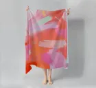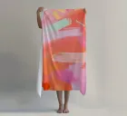 This abstract work is composed of sweeping, layered gestures in coral, blush pink, soft peach, and flashes of mint and pale yellow. The colors flow into one another with a luminous softness, creating a sense of movement without urgency. Warmer orange and red tones anchor the composition, while lighter passages introduce air and openness, allowing the surface to breathe.