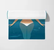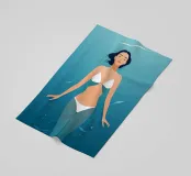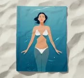 A woman floating effortlessly in clear water, her form blending with the ocean’s calm. This minimalist piece captures freedom, stillness, and connection with nature.