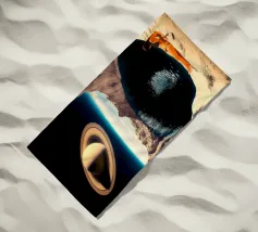 dove sei andato senza di me. ~ Una donna si trova da sola in un paesaggio simile a quello di Marte e guarda la Terra. vibrazioni retro futuristiche e toni terrosi
