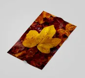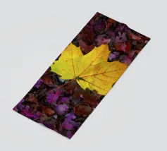 Eine gelbes Ahornblatt liegt auf vielen weiteren Blättern im Herbst.