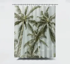 Lasciatevi trasportare dall'eleganza e dalla maestosità di queste palme imponenti. Mentre le loro cime formano un disegno circolare contro un cielo morbido e pastello, sentite la pace e la calma che offre la natura. Questa angolazione insolita non solo mette in risalto l'altezza degli alberi, ma anche la loro bellezza senza tempo.