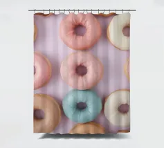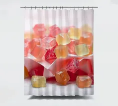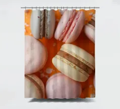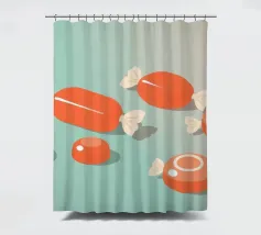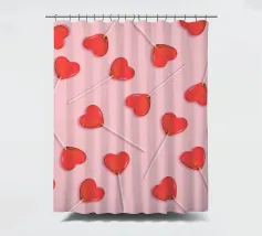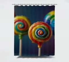 Un vivace mix di caramelle è distribuito su una superficie rosa, che mostra varie forme e colori, tra cui lecca-lecca roteanti e dolciumi rotondi. Questa disposizione giocosa invita a una gioiosa indulgenza.
