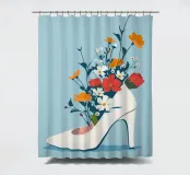 Un'illustrazione vibrante e potenziante di uno stiletto che sboccia con fiori colorati, simbolo dell'amore per se stesse, della crescita e della forza femminile. Lo sfondo blu minimale esalta la composizione audace ma delicata, trasformando la moda in una metafora di fiducia e bellezza. Perfetto per gli interni che celebrano la positività, l'emancipazione e l'individualità: un pezzo moderno che ispira le donne a prosperare con grazia e stile.
