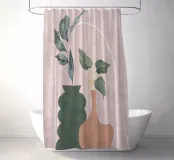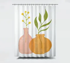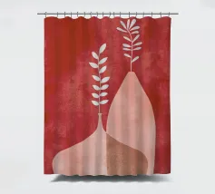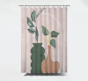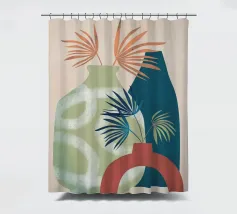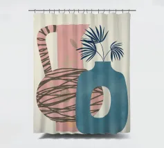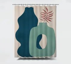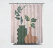 Una composizione moderna ed estetica che presenta due eleganti vasi con un fogliame verde e rigoglioso, su uno sfondo rosa tenue con un elemento ad arco. Il design equilibrato e le forme organiche creano un'atmosfera serena e senza tempo, perfetta per gli interni contemporanei.