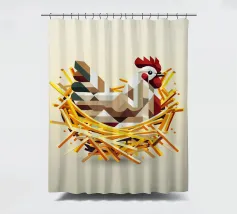 Due coniglietti pasquali stilizzati tra fiori colorati, pulcini e farfalle: un motivo allegro in stile poligonale, ideale per il periodo pasquale e l'inizio della primavera.