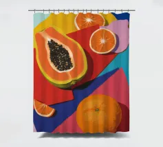 Un'opera d'arte astratta vibrante ed espressiva con una fusione di colori audaci di ispirazione fauvista come il magenta, l'arancione e il nero. Le pennellate e le forme energiche creano un'opera dinamica e appassionata.