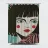 Un ritratto grafico di grande impatto di una donna con un'acconciatura nera e labbra rosse, con lo sguardo intenso rivolto all'osservatore, su uno sfondo colorato e astratto.