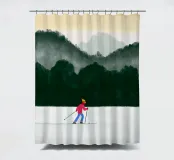 Un tranquillo momento invernale dall'eleganza minimalista: una singola persona scivola sugli sci attraverso un paesaggio innevato, mentre sullo sfondo colline verdi e un cielo morbido e dorato garantiscono calma ed equilibrio. Questo disegno cattura la bellezza pacifica di una limpida mattina d'inverno - minimalista, armonioso e moderno. Perfetto per gli amanti delle scene tranquille e dell'estetica nordica.