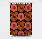 Fate una dichiarazione con questo audace motivo floreale mid-mod. Margherite astratte su steli frondosi sono reimmaginate in uno stile grafico retrò, con accenti rosa, marrone terra e ocra su uno sfondo viola intenso.