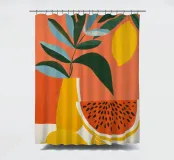 Un'esuberante natura morta piena di luminosità mediterranea! Questa potente composizione combina limoni stilizzati, un'anguria a fette e foglie verde scuro in un vaso giallo su uno sfondo rosso corallo brillante. Lo stile combina la chiarezza decorativa di Matisse con l'estetica del design piatto di tendenza. Le forme ridotte e la palette di colori giallo, arancione e verde emanano pura energia estiva. La precisione grafica - dai semi di anguria alla fetta d'arancia - dimostra maestria e finezza. Un'opera ottimista che riempie gli ambienti di gioia di vivere meridionale.