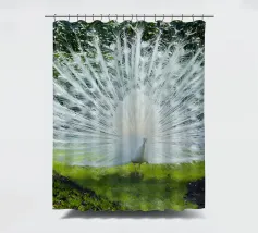 Una fotografia straordinaria che cattura un pavone in un'esibizione completa e ipnotica. I ricchi toni gioiello delle piume e l'imponenza della coda ne fanno un'opera d'arte di grande impatto.