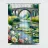 Ritratto paesaggistico di uno stagno di ninfee con ponte.