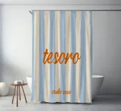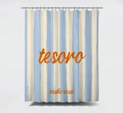 "Tesoro" significa tesoro - in italiano e in spagnolo. Questo design combina una calda tipografia con un morbido sfondo a righe e l'aggiunta ironica "studio scusi". Ideale per le anime creative, gli amanti del design e dell'estetica mediterranea.