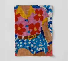 Una vivace serie di fiori di campo colorati disposti in un vaso blu. Lo sfondo è di un rosa strutturato e modellato, creando una composizione ricca e gioiosa, piena di vita e di colore.