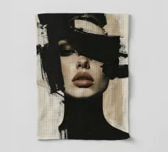 Un'opera d'arte moderna ed espressiva che mostra una figura femminile di profilo, metà umana e metà pietra. Le sottili transizioni tra pelle e struttura simboleggiano profondità emotiva, fragilità e forza allo stesso tempo. La combinazione di colori neutri, beige e grigi, conferisce all'immagine calma ed eleganza, perfetta per ambienti moderni, minimalisti e profondi.