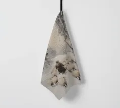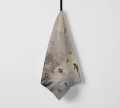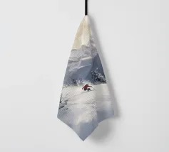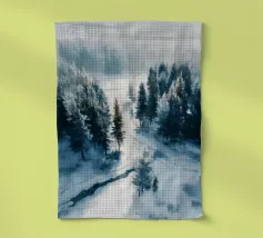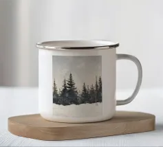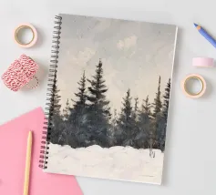 Un dipinto invernale d'atmosfera che cattura la semplice bellezza della natura. Abeti rossi scuri si stagliano contro un cielo grigio e soffice, mentre il terreno riposa sotto una spessa coltre di neve. La struttura fine delle pennellate conferisce al dipinto profondità e un'atmosfera tranquilla. Questa scena ricorda la forza tranquilla dell'inverno, quei momenti in cui il mondo si riposa.