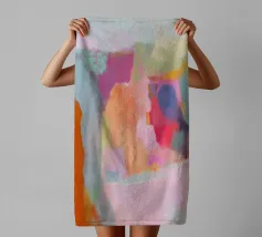 Quest'opera d'arte astratta dai tenui colori pastello cattura un'atmosfera calma e armoniosa. Le morbide pennellate e le tenui tonalità di beige, azzurro e rosa conferiscono al dipinto un'eleganza moderna e minimalista che si adatta perfettamente a qualsiasi casa contemporanea.