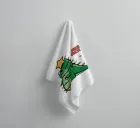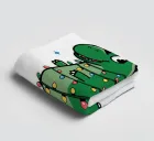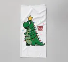 Un allegro dinosauro verde è decorato in modo spiritoso per assomigliare a un albero di Natale, con tanto di luci colorate e stella sulla testa. Le parole "Tree Rex" sono scritte in modo scherzoso accanto ad esso, per rendere ancora più festoso il tema.