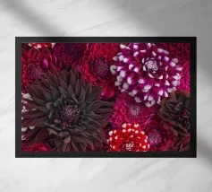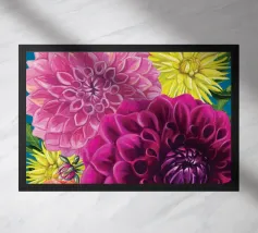 Immergetevi nella bellezza abbagliante delle dalie dai colori vivaci, immortalate in questa splendida fotografia. Questa vivace composizione mostra una varietà di dalie in piena fioritura, dai gialli solari e dai rossi infuocati ai rosa tenui e ai viola intensi. Una celebrazione della maestria della natura, questa immagine è perfetta per illuminare qualsiasi spazio e creare un'atmosfera allegra ed edificante.