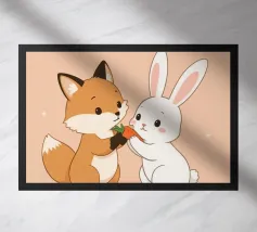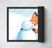 La volpe Voxy abbraccia dolcemente il suo piccolo amico di neve sotto il sole invernale. Colori tenui, impronte giocose e un'accogliente scena innevata rendono quest'opera d'arte perfetta per le camerette dei bambini, le nursery e gli amanti dell'arredamento invernale. Un'illustrazione che fa sciogliere il cuore, piena di amicizia e calore.