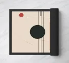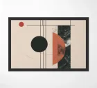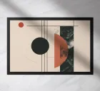 This unique motif combines geometric shapes with a harmonious colour palette of green, black and red on a warm beige background. The precise arrangement of lines, circles and semi-circles gives the design a modern yet artistic feel. Perfect for wall murals, cushions, mobile phone covers and much more - ideal for anyone who wants to integrate contemporary aesthetics into their everyday life.