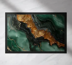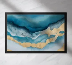 Un panorama mozzafiato, in cui la bellezza della costa viene catturata in un unico momento. Le onde di giada, ornate da accenti dorati, si infrangono contro la riva dorata, creando uno spettacolo ipnotico. Gli intricati disegni delle onde, come fili d'oro, tessono un arazzo di bellezza e tranquillità.