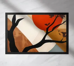 Quest'opera d'arte presenta un albero stilizzato con fiori di colore verde scuro su uno sfondo sfumato di corallo e bianco tenue. I rami scuri creano un contrasto sorprendente, mentre i piccoli boccioli corallo aggiungono dettagli delicati. Questo pezzo porta un tocco di arte moderna ispirata alla natura in qualsiasi spazio.