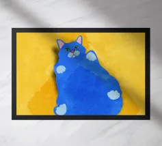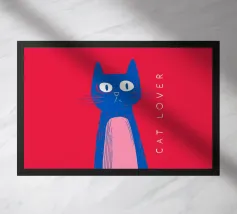 Una vivace illustrazione di gatti ispirata alla pop-art, con un sorprendente felino blu dalla finitura astratta e strutturata. Su uno sfondo rosa, con una vivace stampa di labbra, questo disegno emana fascino e un'estetica moderna. Perfetto per gli amanti dei gatti e per chi apprezza l'arte colorata e accattivante!