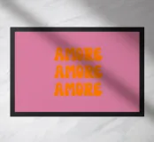 Scrittura retro Amore in rosa su sfondo arancione. Un grande motivo per il vostro salotto come poster, o come maglietta o felpa con cappuccio per un giorno "amore". I colori vivaci mettono di buon umore e sono perfetti come regalo di nozze, per la festa della mamma, per un addio al celibato, per una squadra di sposi o per un regalo alla persona preferita. Un'ottima idea anche per le vostre vacanze estive in Italia.