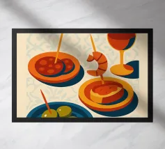 Un omaggio visivo al momento preferito dalla Francia: l'aperitivo. Bicchiere da cocktail, bottiglia di vino, olive, agrumi a fette... C'è tutto. In uno stile grafico colorato e vintage, questo poster risveglia i sensi e invita alla convivialità. Un must decorativo per gli amanti dei momenti semplici e gustosi.