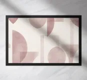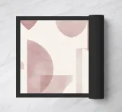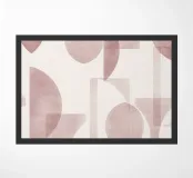 Il disegno presenta un'accattivante disposizione di cerchi, rettangoli e forme astratte di foglie sovrapposte, che alludono sottilmente a forme organiche all'interno della struttura. La texture granulosa aggiunge profondità e interesse visivo.