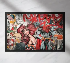 Le opere di Josh Ruggs guardano in modo satirico al sogno americano e a tutti i discorsi sociali, politici e culturali che vi ruotano attorno. Utilizza oggetti familiari di uso quotidiano, celebrità ed estetica comica, chiaramente nella tradizione della Pop Art, come strumenti per visualizzare queste narrazioni della cultura di massa, del consumo e del culto della personalità. Per creare le sue immagini multistrato, l'americano lavora con spray, pittura acrilica, olio, inchiostro e praticamente con ogni superficie che gli capiti sotto mano.