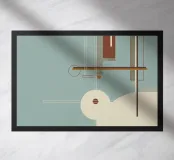 Un'opera d'arte astratta di grande impatto, ispirata ai principi del design Bauhaus. Questo pezzo presenta cerchi, rettangoli e linee sottili disposti in una composizione geometrica equilibrata. La tavolozza di colori, composta da blu smorzato, marrone intenso e crema morbido, aggiunge calore e raffinatezza. Perfetta come opera d'arte da parete per interni moderni, minimalisti o di metà secolo, questa opera d'arte conferisce struttura e stile a qualsiasi spazio, rimanendo versatile e senza tempo.
