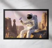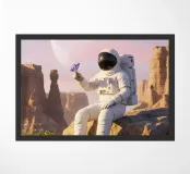 Questa incantevole opera d'arte surreale mostra un astronauta che riposa su una sporgenza rocciosa in un tranquillo paesaggio alieno, tenendo delicatamente in mano una delicata farfalla. Circondata da fiori in fiore, luce soffusa e formazioni rocciose lontane sotto una pallida luna celeste, la scena fonde l'esplorazione spaziale con la tranquilla bellezza naturale. Il contrasto tra la tuta dell'astronauta e la fragile farfalla simboleggia la curiosità, la speranza e l'armonia tra scienza e natura. Perfetta per interni moderni, camere da letto, studi e spazi creativi, quest'opera d'arte si rivolge agli amanti dell'arte fantastica e dell'estetica spaziale.