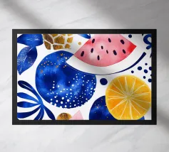 Un vivace disegno di banane in un moderno stile pop art! Questo disegno colorato presenta banane gialle e vivaci e forme stilizzate in blu e crema che emanano energia e freschezza. Perfetto come murale, su tazze o come accessorio di stile per la cucina, il soggiorno o l'ufficio. Per gli amanti della frutta, per gli appassionati di design tropicale o come decorazione moderna, questo motivo porta il buon umore e il colore nella vita di tutti i giorni. Un regalo ideale per gli amanti dell'arte e del design che cercano prodotti unici e allegri.