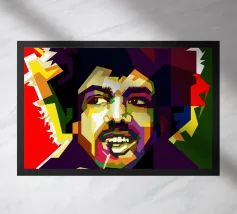 Un vibrante ritratto in stile WPAP di Bob Ross, l'amato pittore noto per la sua voce calma e i suoi "alberelli felici". Questa opera d'arte reimmagina Ross con audaci forme geometriche e colori vivaci, catturando i suoi iconici capelli afro, il suo sorriso sereno e il suo spirito artistico in una moderna estetica pop-art.