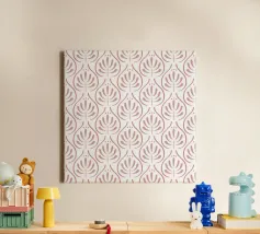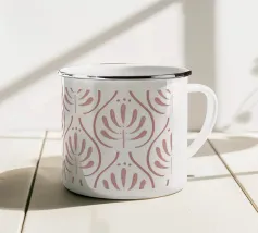 Semplice motivo bohémien stampato a blocchi nei colori rosa e bianco.