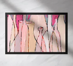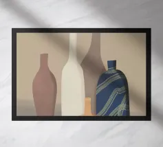 Quest'opera d'arte minimalista presenta un gruppo di bottiglie la cui silhouette è enfatizzata dai toni accesi del giallo, del rosso e dell'arancione. Le aree geometriche di colore e il forte contrasto tra luce e buio creano un effetto dinamico, quasi tridimensionale. Il quadro unisce l'astrazione all'eleganza moderna ed è perfetto per soggiorni contemporanei, bar o cucine, dove crea un accento caldo e artistico. Ideale per chi preferisce forme chiare e colori vivaci nel proprio arredamento.