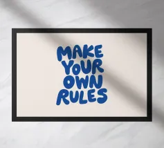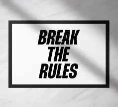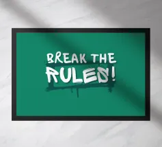 Scrittura Break Rules in eleganti tonalità di blu con un effetto ricco e strutturato.