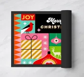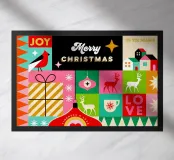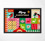 Celebrate la magia della stagione con questa vivace e festosa opera d'arte! Caratterizzato da un allegro mix di forme grafiche e simboli iconici delle festività - tra cui renne, baubles, calze, alberi di Natale, stelle, case, regali, slitte e altro ancora - questo disegno esplode di colori vivaci e di allegria natalizia.