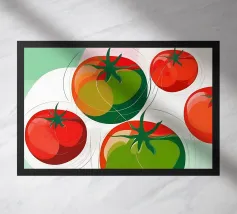 Una natura morta vivace e stravagante con succosi cachi annidati in un sacchetto di rete color menta, su strisce verdi di ispirazione vintage. Questo audace pezzo pop-art dà un tocco di freschezza alle pareti della cucina, agli angoli della galleria o al vostro angolino preferito. Un delizioso cenno alla vita lenta e al fascino retrò.
