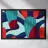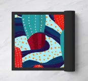 A playful and modern pattern of stylized cacti in shades of blue and teal with red thorns. The composition against a dark, textured background is quirky, contemporary, and inspired by desert flora.