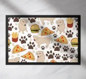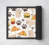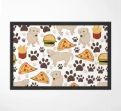 Cane con motivo fast food e impronte di zampe