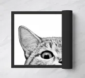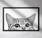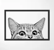 Un gatto meme che sbircia dal bordo di un bancone con grandi occhi spalancati