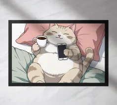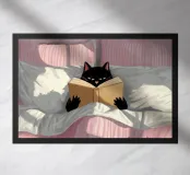 Date un tocco di morbidezza alle vostre pareti con questa illustrazione di un gatto nero comodamente a letto, immerso in un buon libro. Questa immagine rilassante crea un'atmosfera avvolgente, ideale per una camera da letto, un angolo lettura o qualsiasi spazio dedicato alla calma. Con il suo umorismo discreto e la sua tenerezza, è il regalo perfetto per gli amanti dei gatti, dei libri e di chi ama le atmosfere accoglienti.