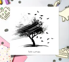 Questa elegante opera d'arte cattura l'essenza dell'autunno con un albero grazioso e foglie cadenti, disegnate in uno stile minimalista di pennellate in bianco e nero. È possibile personalizzare il testo per renderlo proprio, ma l'opera d'arte rimane fissa per preservare il suo carattere unico.