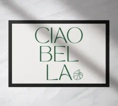 Una stampa "Ciao Bella" divertente e civettuola, con testo rosso e labbra rosa. Giocoso e spensierato, perfetto per aggiungere fascino alla camera da letto, al dormitorio o alla parete della galleria.
