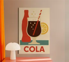 Ritorno alle origini della leggendaria bevanda! Questo poster pop presenta l'iconica bottiglia e un bicchiere di cola gassata, accompagnato da una cannuccia bianco-rossa e da una fetta di limone. I colori rosso vivo, marrone cola e giallo intenso celebrano l'energia di Atlanta, luogo di nascita della leggendaria bibita. Stampato su carta di qualità superiore, questo disegno conferisce un'atmosfera da diner anni '50 e un tocco rinfrescante a un bar, a una cucina o a un'area relax moderni.
